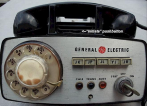These were basically two-way radios with a trunk-mounted transceiver and a control head up front. It had either a “call” button or, later, a rotary dial.