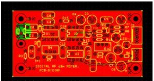 To demonstrate the service, the following circuit board was produced with the Express PCB software. It is the analog front end for an RF dBm meter: a digital panel-mounted DC Volt meter for the readout.